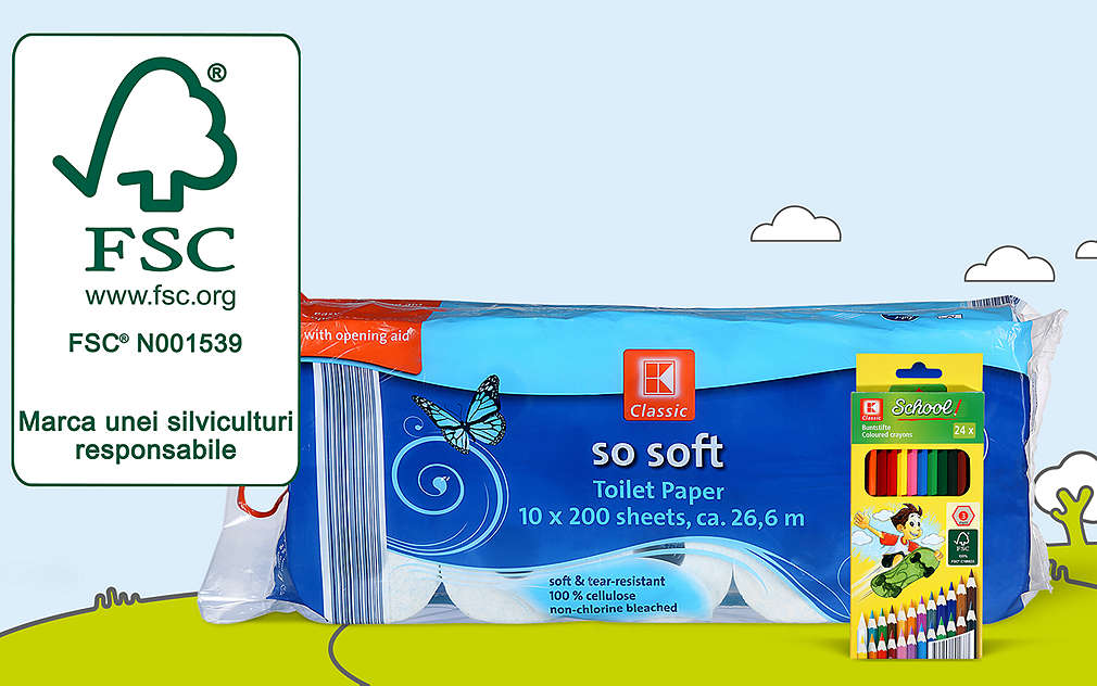 În rândul produselor K-Classic se regăsesc articole având sigiliul FSC®, fapt ce înseamnă că sunt produse în conformitate cu directivele stricte ale Forest Stewardship Councils®. Printre acestea se numără între altele șervețelele, produsele de igienă precum hârtia igienică sau șervețelele de unică folosință și cărbunii pentru grătar. Prin cumpărarea produselor certificate FSC® promovați practicarea la nivel mondial a exploatării responsabile a pădurilor.